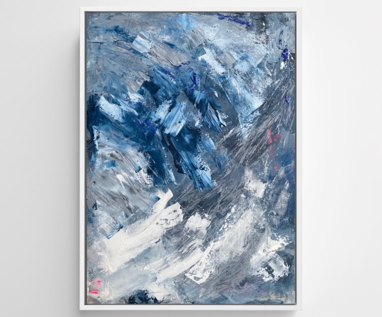 Ein Schattenfugenrahmen aus Holz betont die Wirkung eines Kunstwerks und verleiht ihm eine elegante, zeitlose Ausstrahlung. Ich arbeite bevorzugt mit Rahmen in Schwarz oder Weiß, aber auch Varianten in Gold oder Silber setzen besondere Akzente. Jeder Rahmen wird individuell auf das jeweilige Bild abgestimmt – sei es harmonisch angepasst oder als bewusster, spannungsvoller Kontrast.